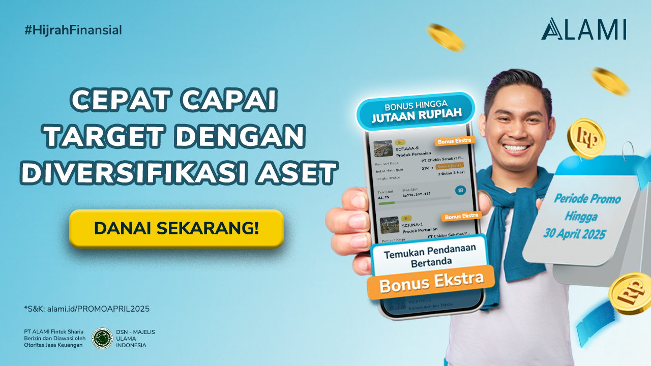 Caranya dengan mendanai di pendanaan bertanda BONUS ESKTRA. Ayo, diversifikasikan asetmu dengan mendanai di ALAMI app. Periode hingga 30 April 2025, selama pendanaan masih tersedia.